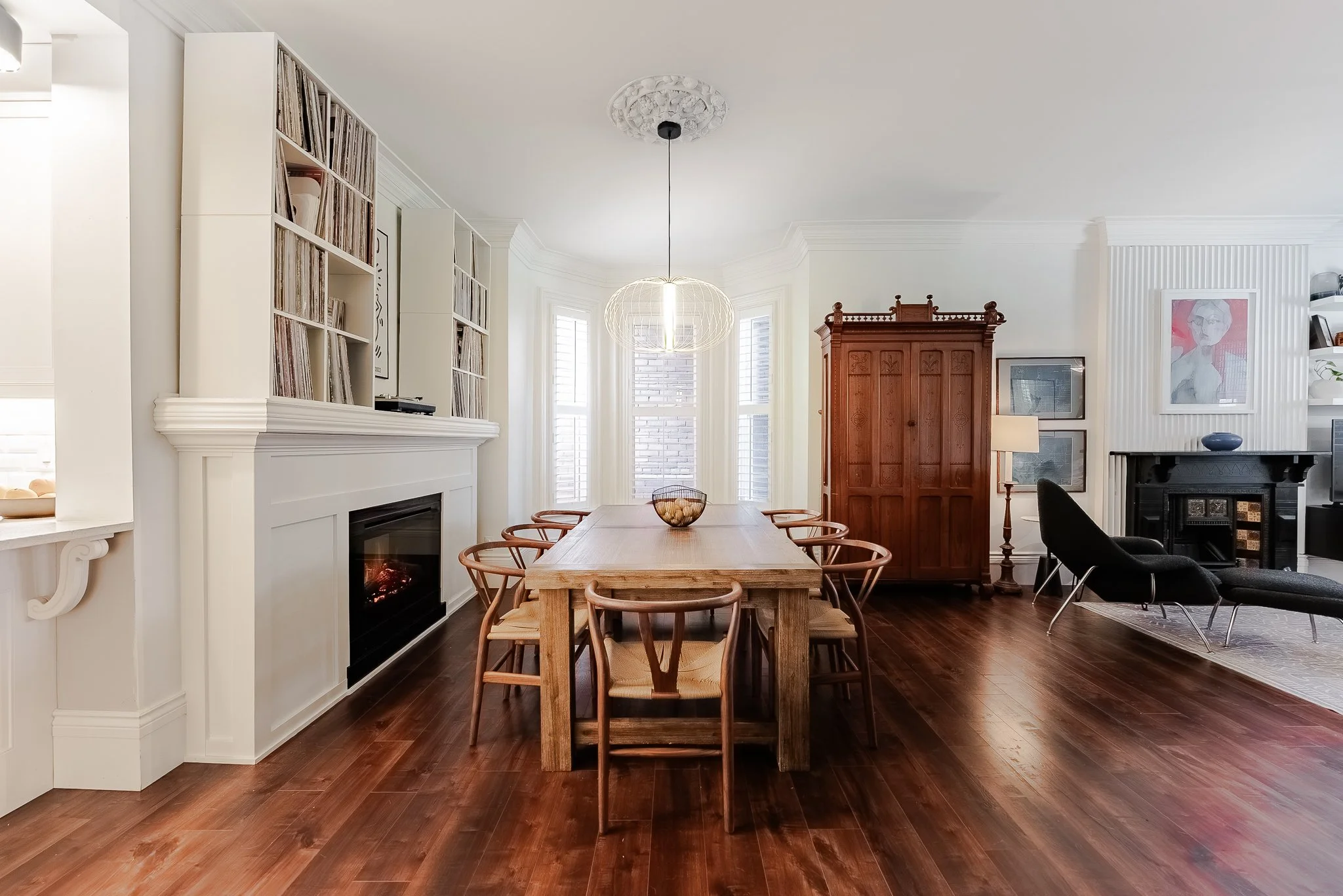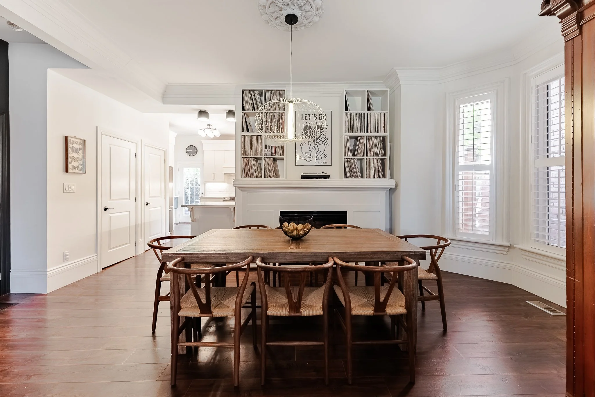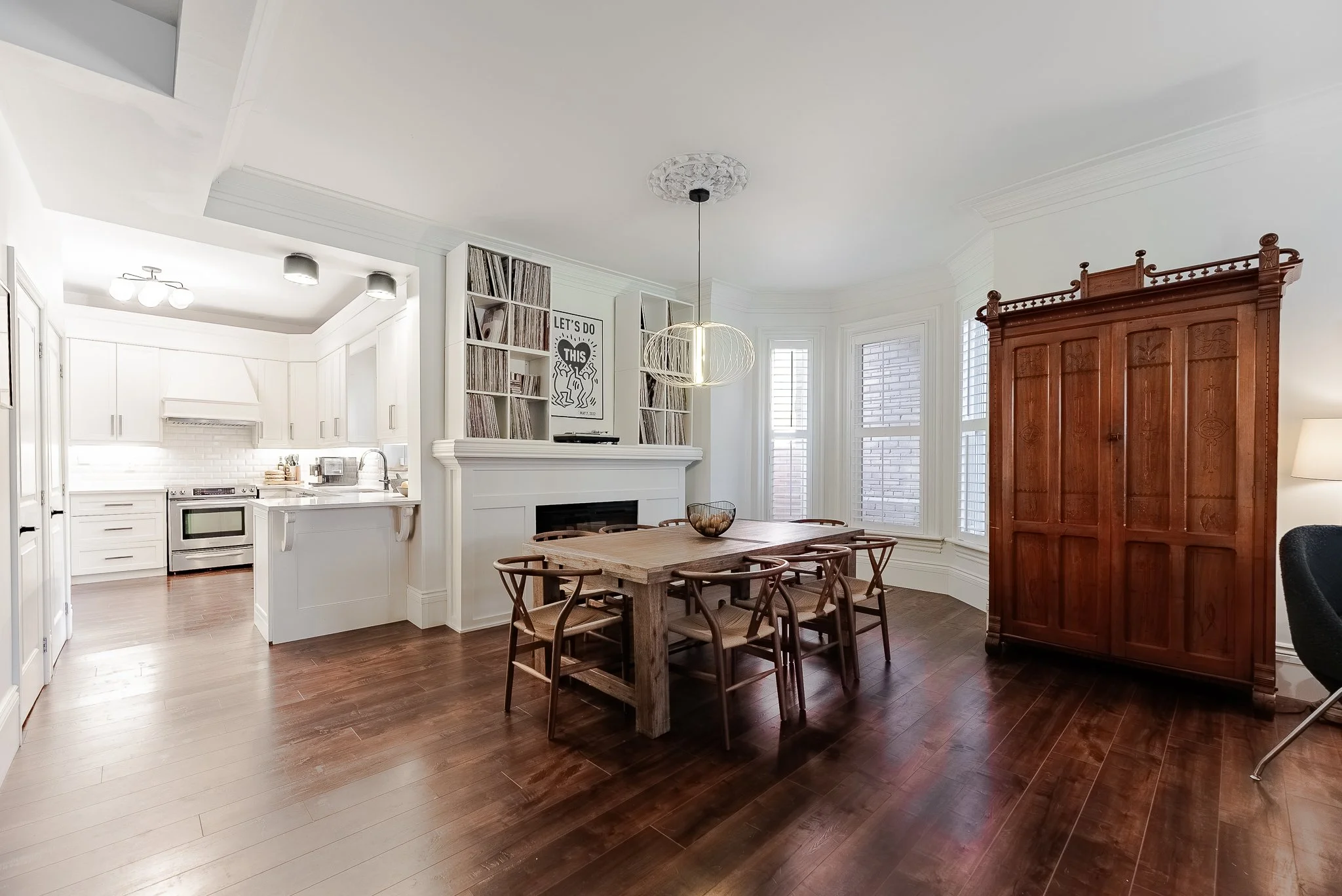Discover 148 Stinson, a detached century home where historic charm is thoughtfully paired with modern design in Hamilton’s sought-after Stinson neighbourhood. A heated vestibule provides a practical and welcoming entry with storage for coats and shoes before leading into the inviting open-concept main floor. Character-filled floors carry through the sunlit living room, anchored by a striking fireplace and framed by charming bay windows. The spacious dining area and original trim details highlight the home’s heritage, beautifully balanced with tasteful design and lighting updates. The kitchen features ample cabinetry, stone countertops, a breakfast bar, and stainless steel appliances. A convenient two-piece bathroom completes the main level.