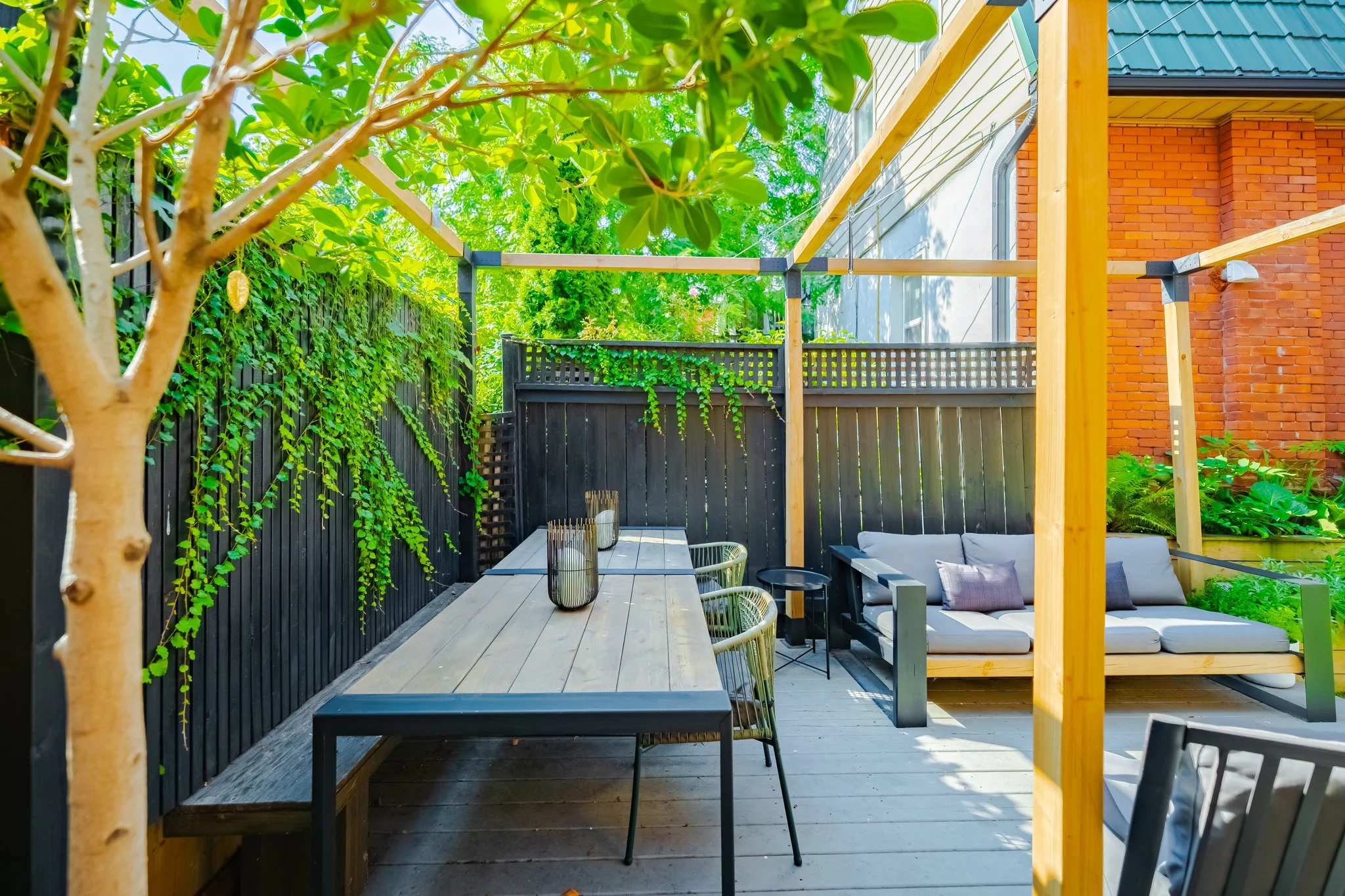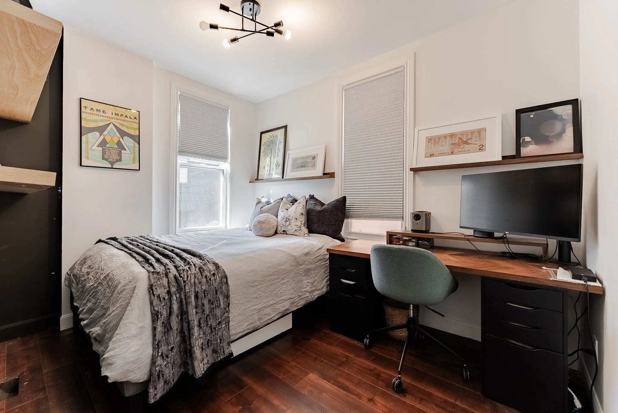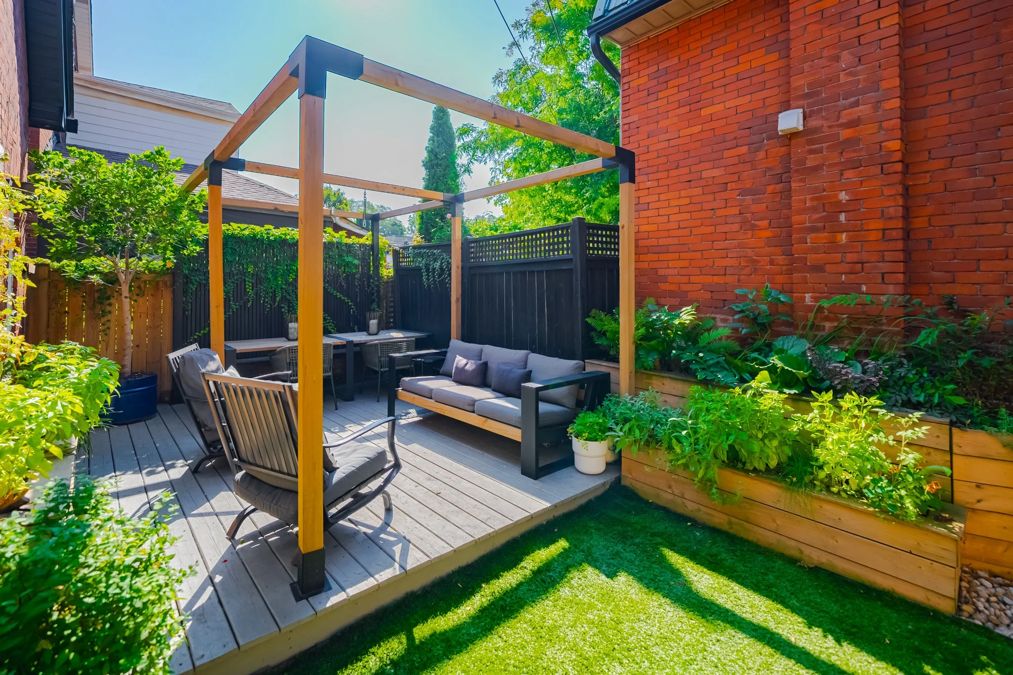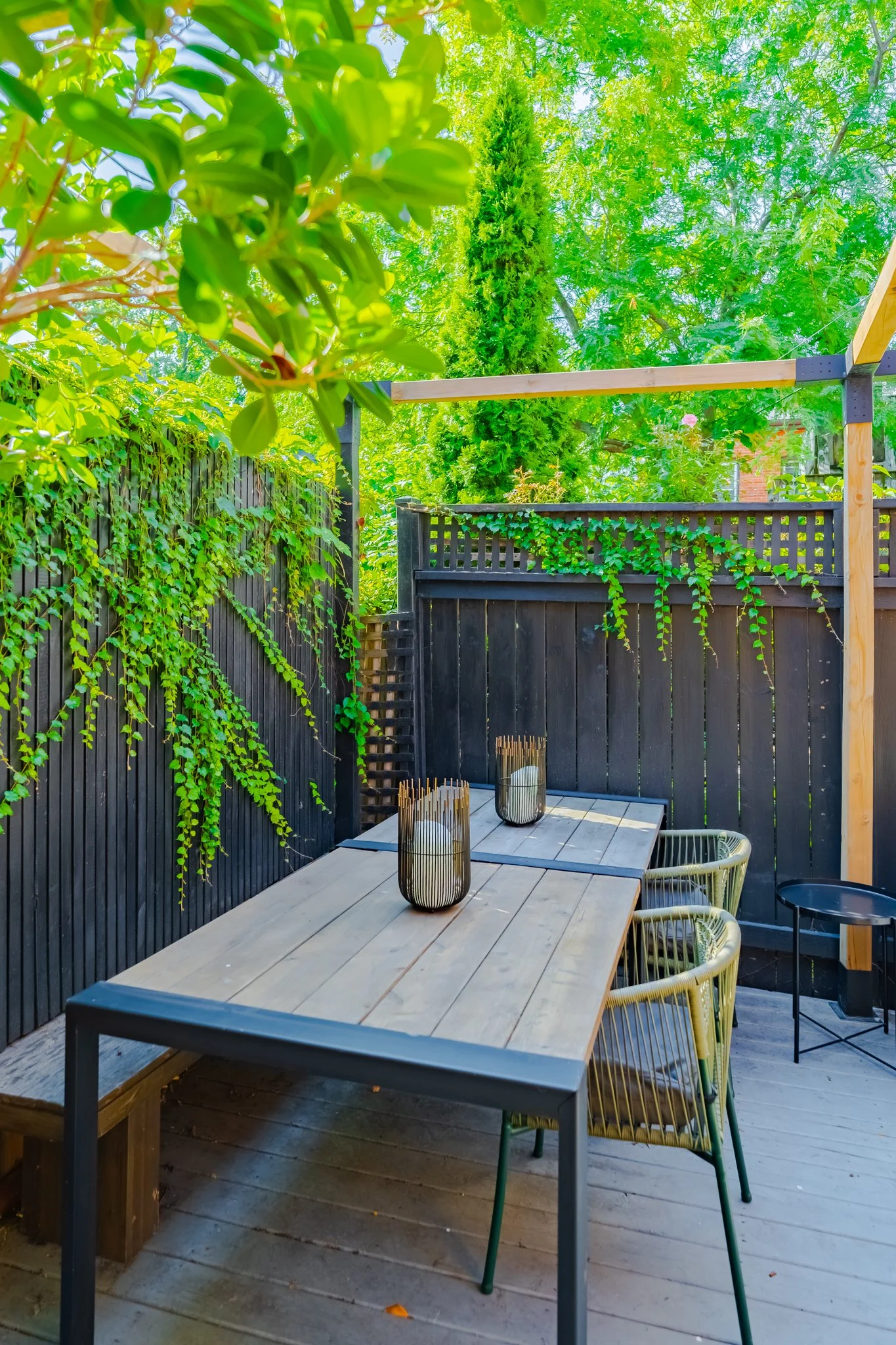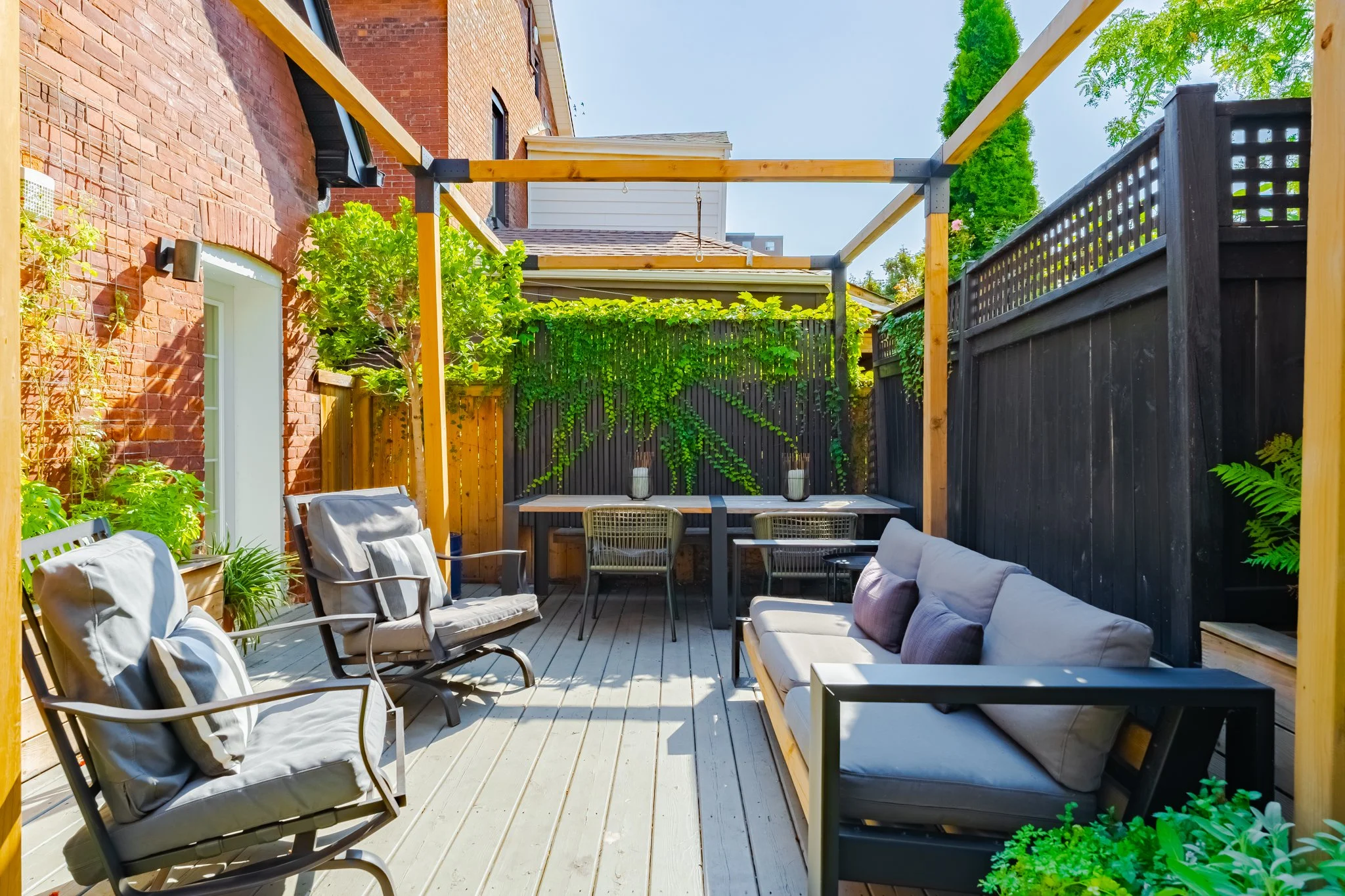 Upstairs, three bright bedrooms are complemented by a thoughtfully updated five-piece bathroom featuring a separate bathtub and shower. The fenced backyard is perfect for entertaining with a deck, dedicated dining and seating spaces, gardens, and low-maintenance artificial turf. A private double driveway offers parking for two vehicles. Notable upgrades include the roof (2021), exterior hardscaping, fencing, and driveway (2022).